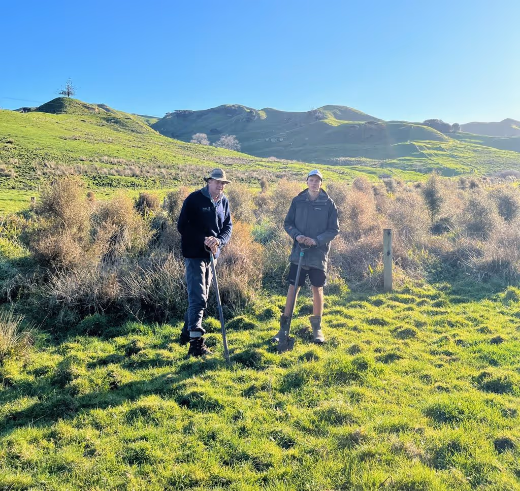 Through our partnership with the Jackson family on their Te Akau farm in Waikato, we’ve planted hundreds of native trees and shrubs — mingimingi, kahikatea, tōtara, kānuka, and ribbonwood among them.