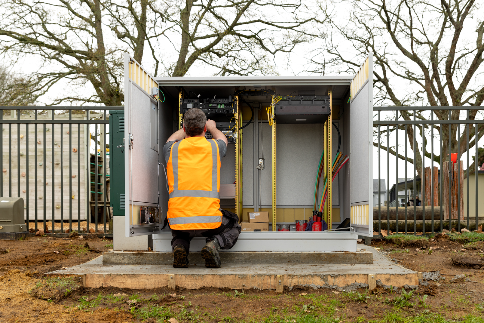 Always-on for residents, staff systems, nurse call, and CCTV.